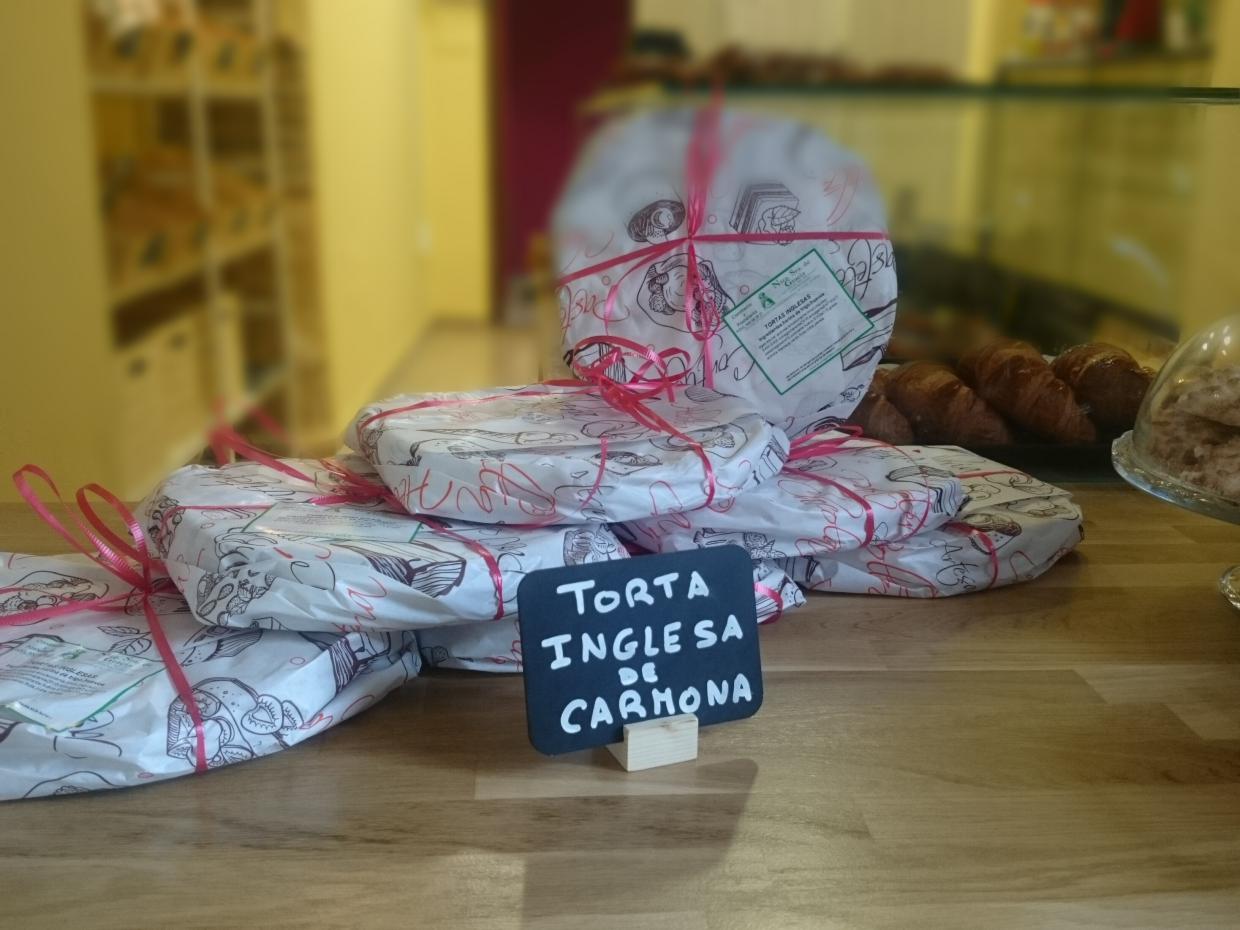 Carmona, asimismo, cuenta también con una importante tradición pastelera, destacando su tradicional torta que se puede adquirir en establecimientos como Horno la Nonna, Confitería Nevada, Obrador Confitería Las Delicias o el Obrador de Nuestra Señora de Gracia. Además, cada 6 de diciembre el Convento de Santa Clara hace su exposición y venta de dulces en el claustro.
