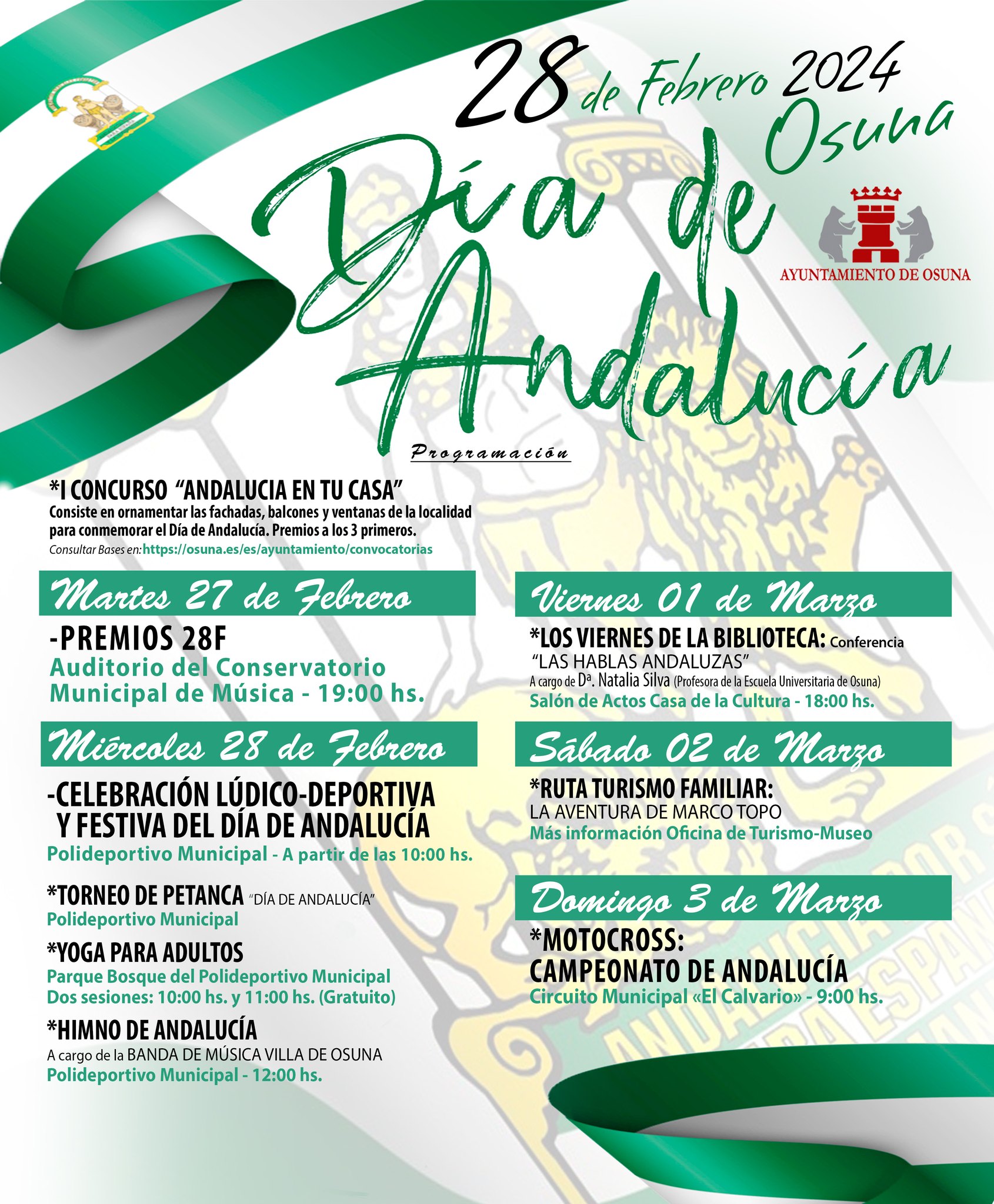 Los municipios que conforman Caminos de Pasión celebran el Día de Andalucía con un amplio programa de actividades que, en algunos casos, se inicia los días previos al 28 de febrero. A continuación puedes consultar toda la programación: