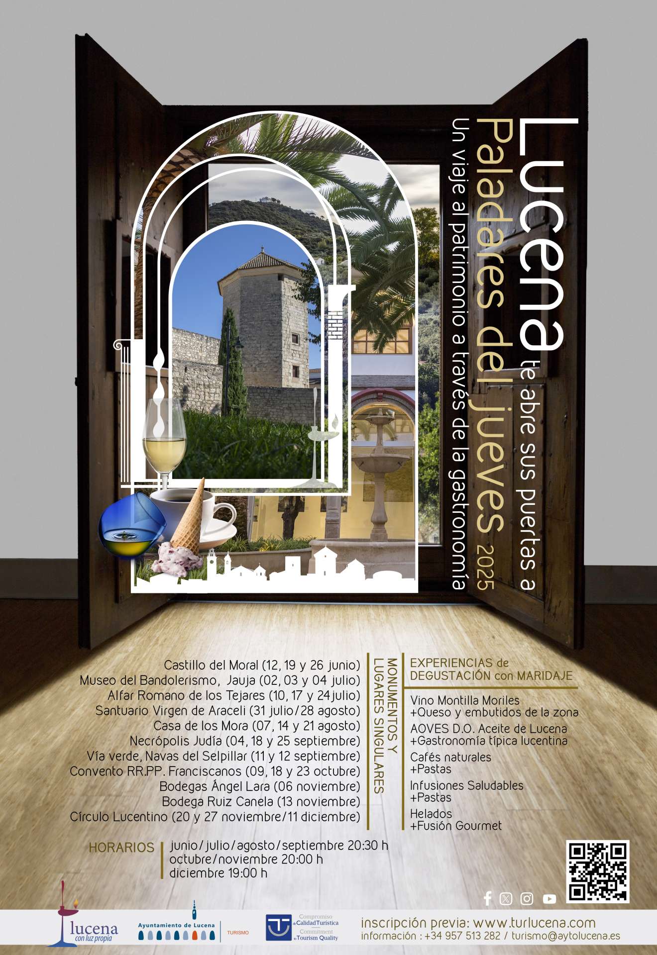 Lucena te abre sus puertas a un viaje singular al patrimonio a través de la gastronomía con PALADARES DEL JUEVES”, una experiencia que pretende promocionar patrimonio y lugares singulares de Lucena descontextualizando para ello la manera habitual de conocer estos recursos turísticos a través de un viaje por los sentidos de la mano de la gastronomía.
