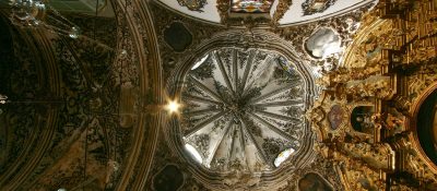La portada está realizada en mármoles de colores, con dos cuerpos, también de Santaella.