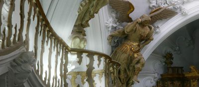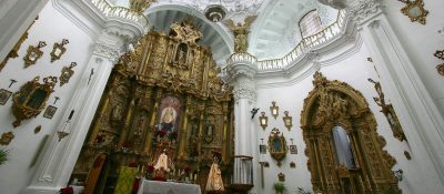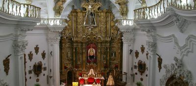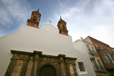 Reedificada sobre la antigua ermita de San Antonio Abad, fue reformada en 1780 por Francisco Javier Pedrajas. Presenta planta de cruz latina con un crucero corto en forma de artesa, cubierta por una bóveda de arista en dos tramos y una gran cúpula gallonada. Debajo una cornisa con formas curvas con unos arcángeles de gran tamaño. Las finas yeserías de estilo rococó se distribuyen en grupos por todo el templo y aparecen, como el resto del conjunto, inundadas de la luz que reciben de las vidrieras de la cúpula y bóveda.