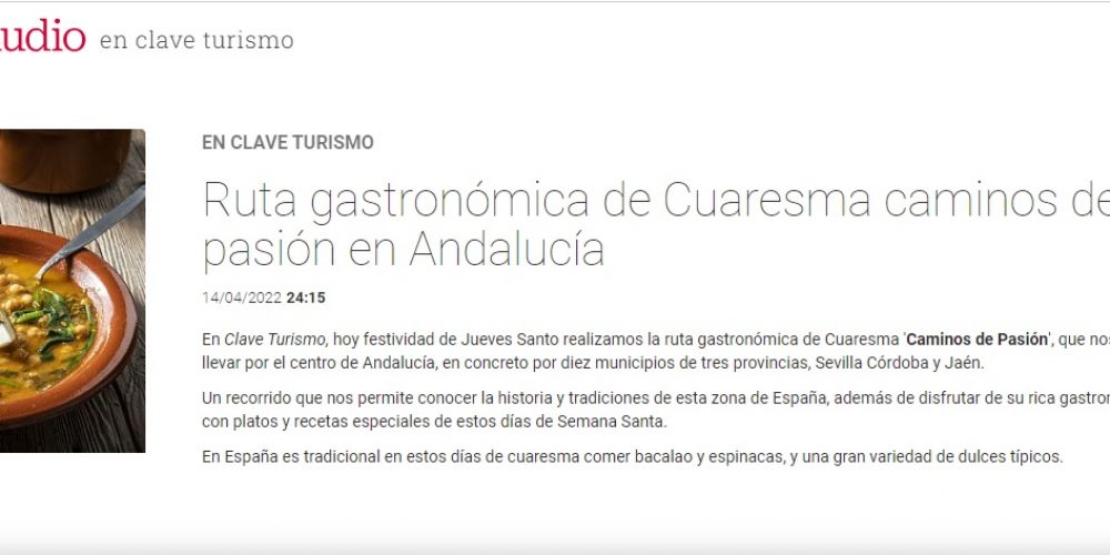 leer másPrograma de radio sobre la gastronomía de la ruta en RTVE Viaje a Ítaca, por Ángela Gonzalo. Más información aquí.